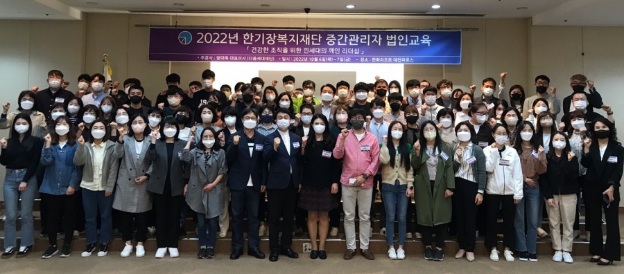 한기장복지재단은 지난 10월 7일(목) ~ 8일(금) 양일간 충청남도 보령시에 있는 한화리조트 대천 파로스에서 『2022년 한기장복지재단 중간관리자 법인교육』 을 진행하였습니다.
