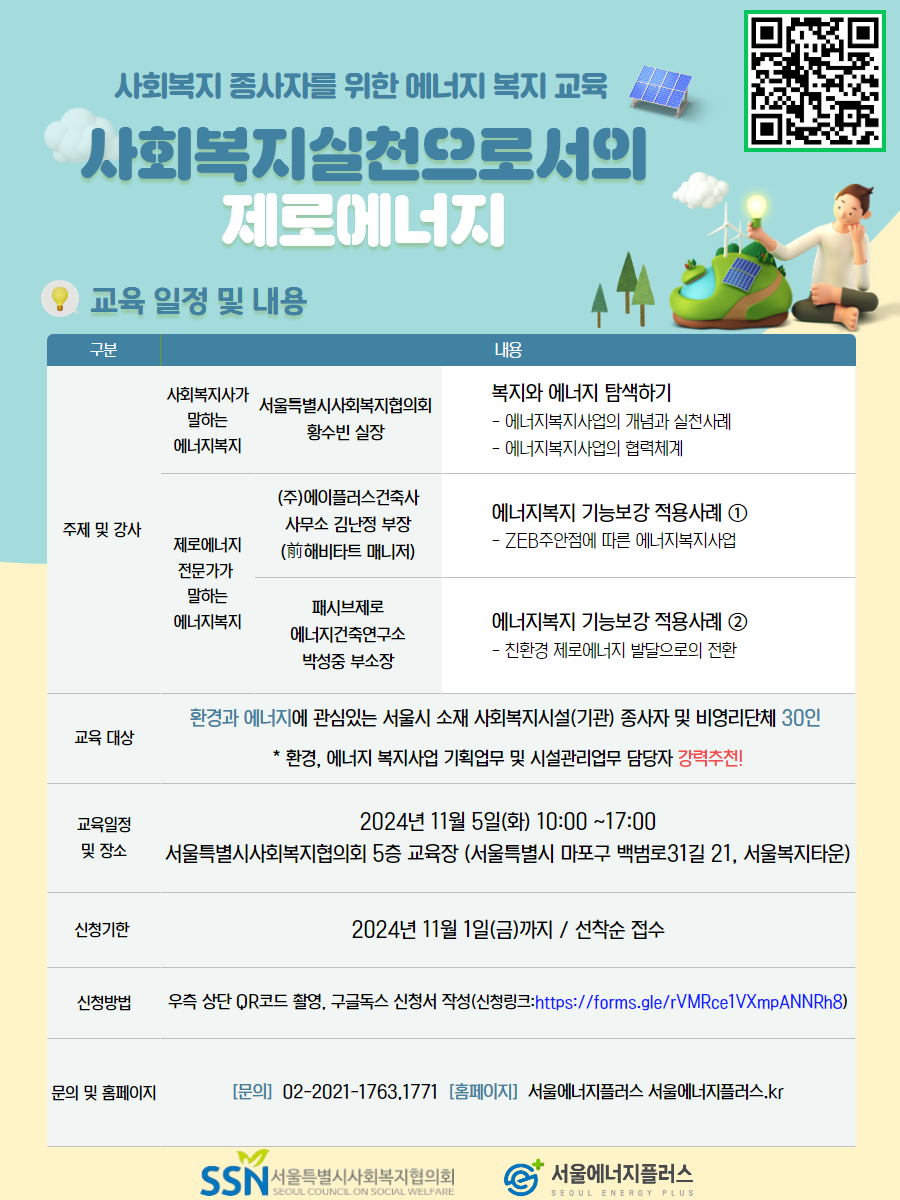 [서울특별시사회복지협의회] 사회복지 종사자 에너지복지교육 '사회복지실천으로서의 제로 에너지' ( ~ 11/01]
