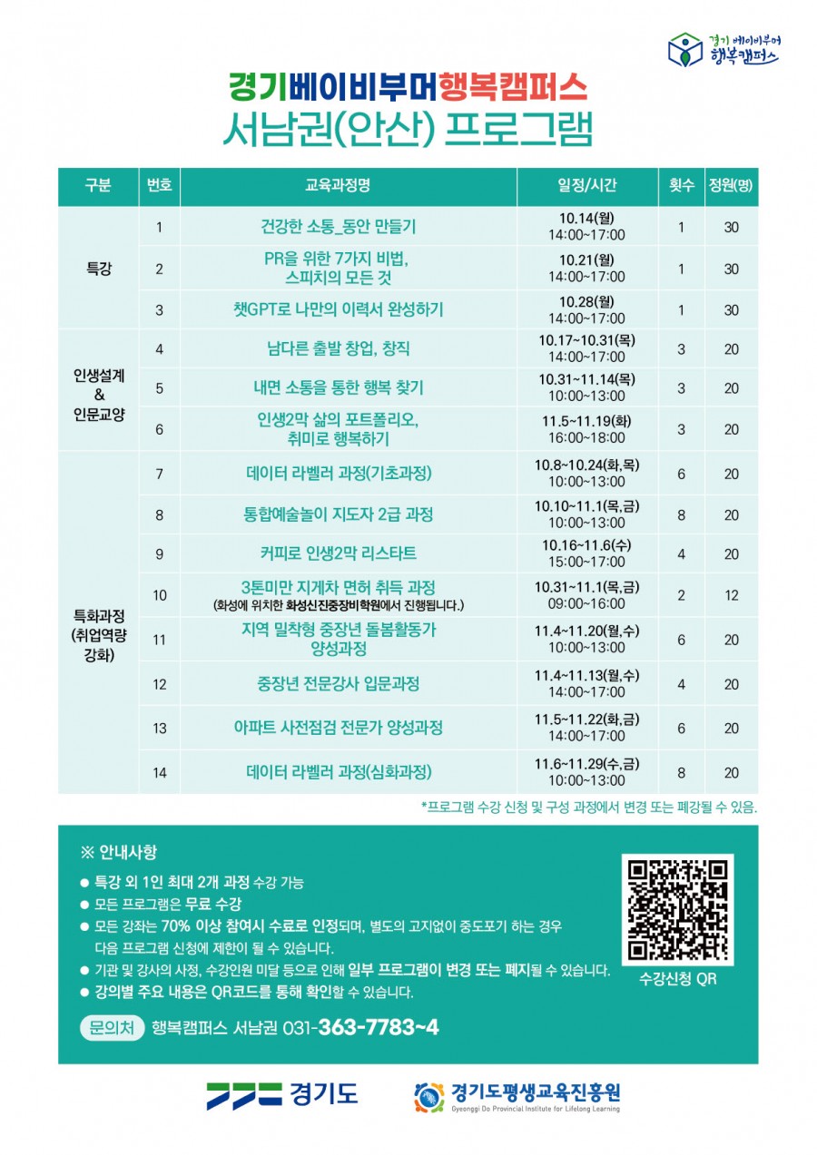 [경기도평생교육진흥원] 경기 베이비부머 행복캠퍼스 서남권역(안산) 2기 정규과정 교육생 모집 ( ~ 10/08)
