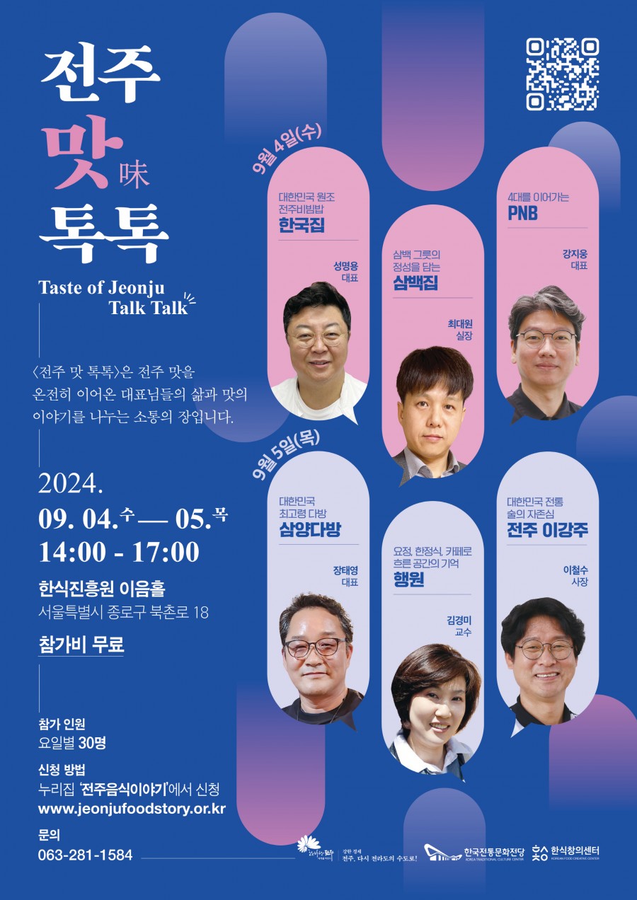 [ (재)한국전통문화전당 ] 전주 맛 대표단들의 '전주 맛 톡톡' 특강 진행( ~ 09/05)