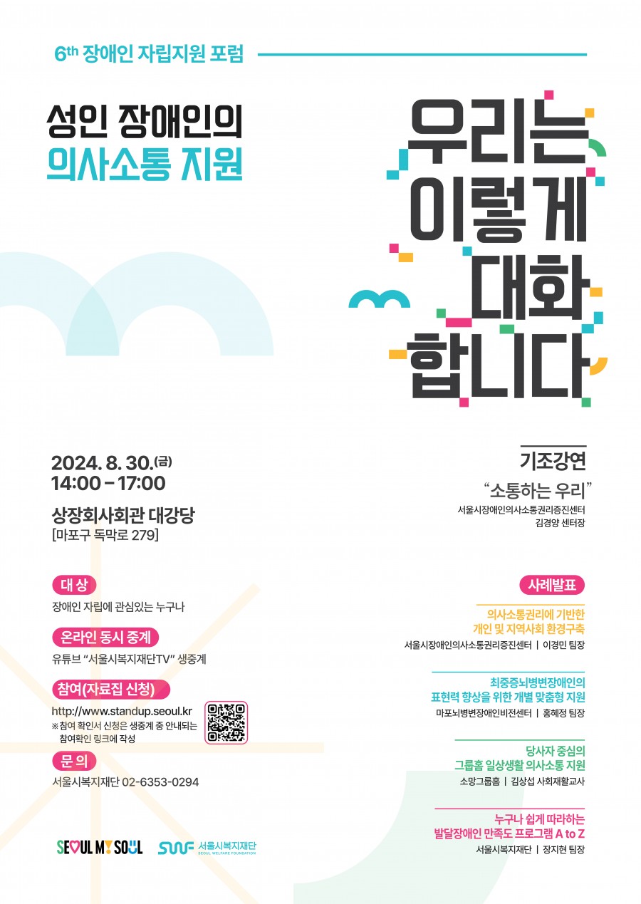 [서울시복지재단] 6차 장애인자립지원포럼 "우리는 이렇게 대화합니다" ( ~ 08/30)
