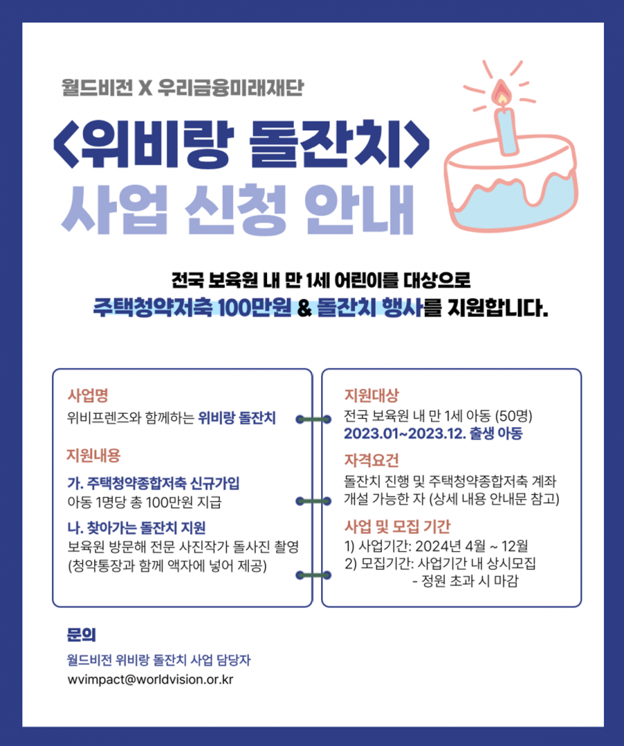 아. 문    의 : 월드비전 위비랑 돌잔치 사업 담당자 (wvimpact@worldvision.or.kr)