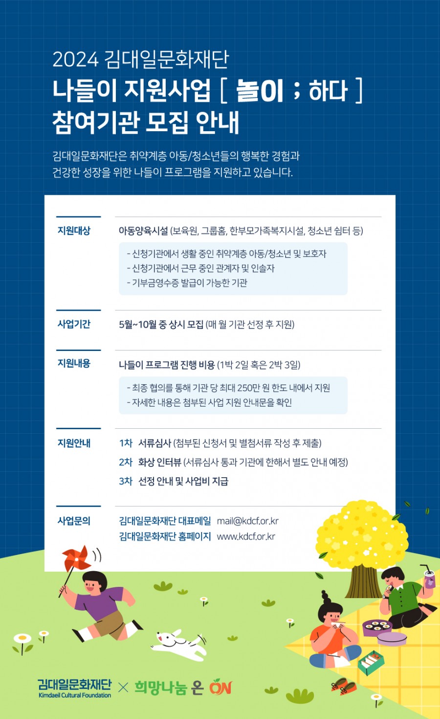 [김대일문화재단] 2024년 [놀이; 하다] 참여 기관 모집( ~ 상시접수 10월까지 )