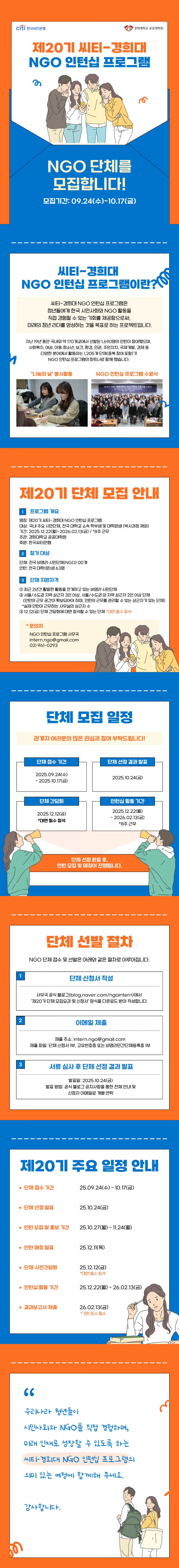 제20기 씨티–경희대 NGO 인턴십 프로그램이 9월 24일부터 참여 단체 접수를 시작합니다!