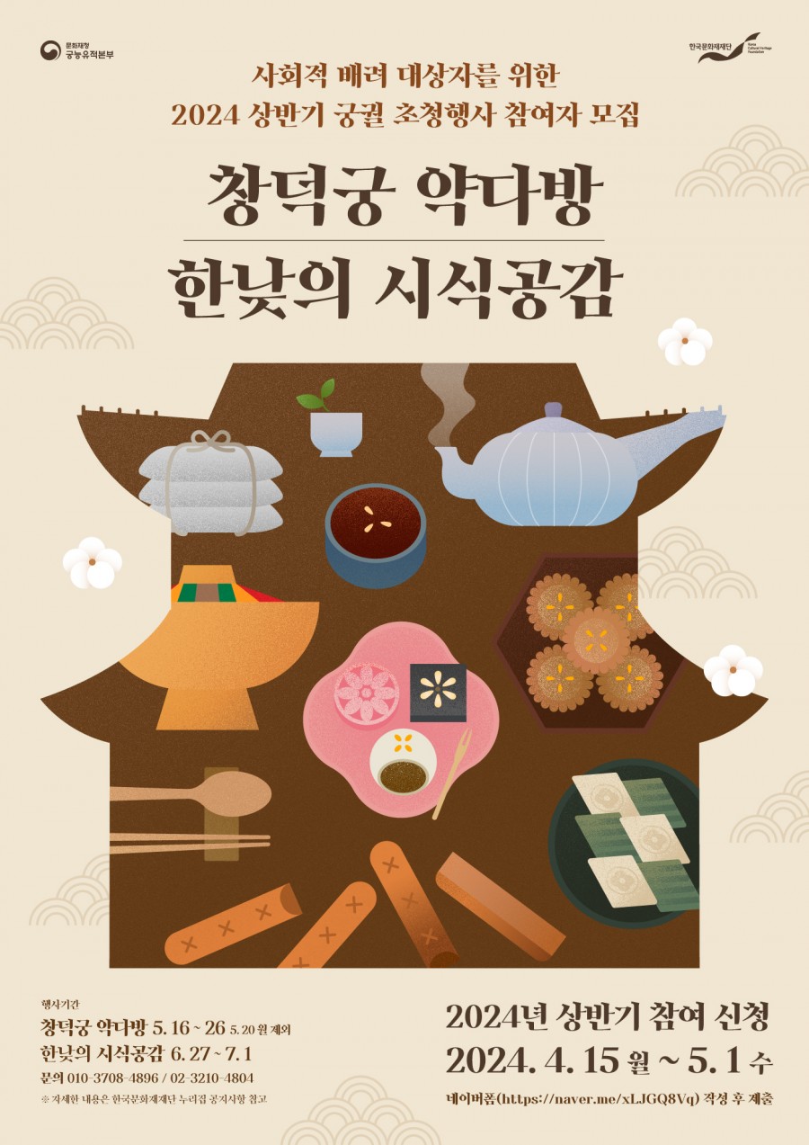 [한국문화재재단] 2024년 상반기 무료 궁궐 초청행사('창덕궁 약다방', '한낮의 시식공감') 참여자 모집 안내 ( ~ 0…