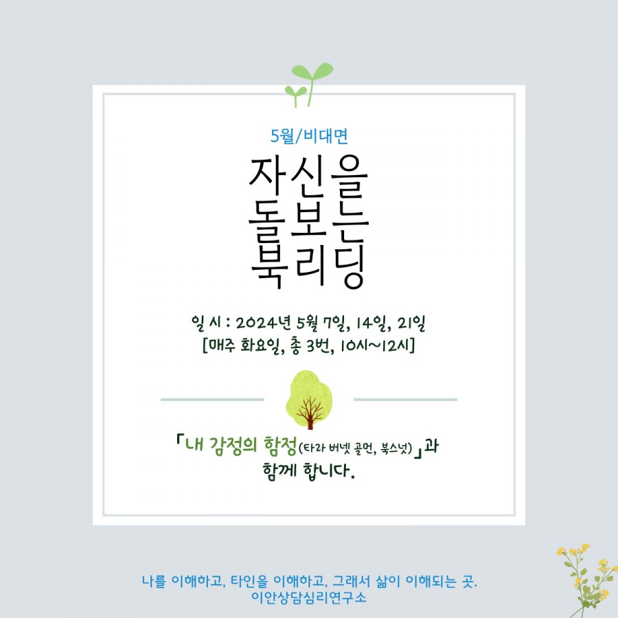 [이안상담심리연구소] 5월/비대면] 자신을 돌보는 북리딩 - 내 감정의 함정 ( ~ 04/30)