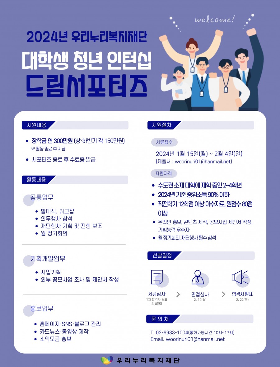 [우리누리 복지재단] 2024년 드림서포터즈 3기 선발 안내 ( ~ 02/04)