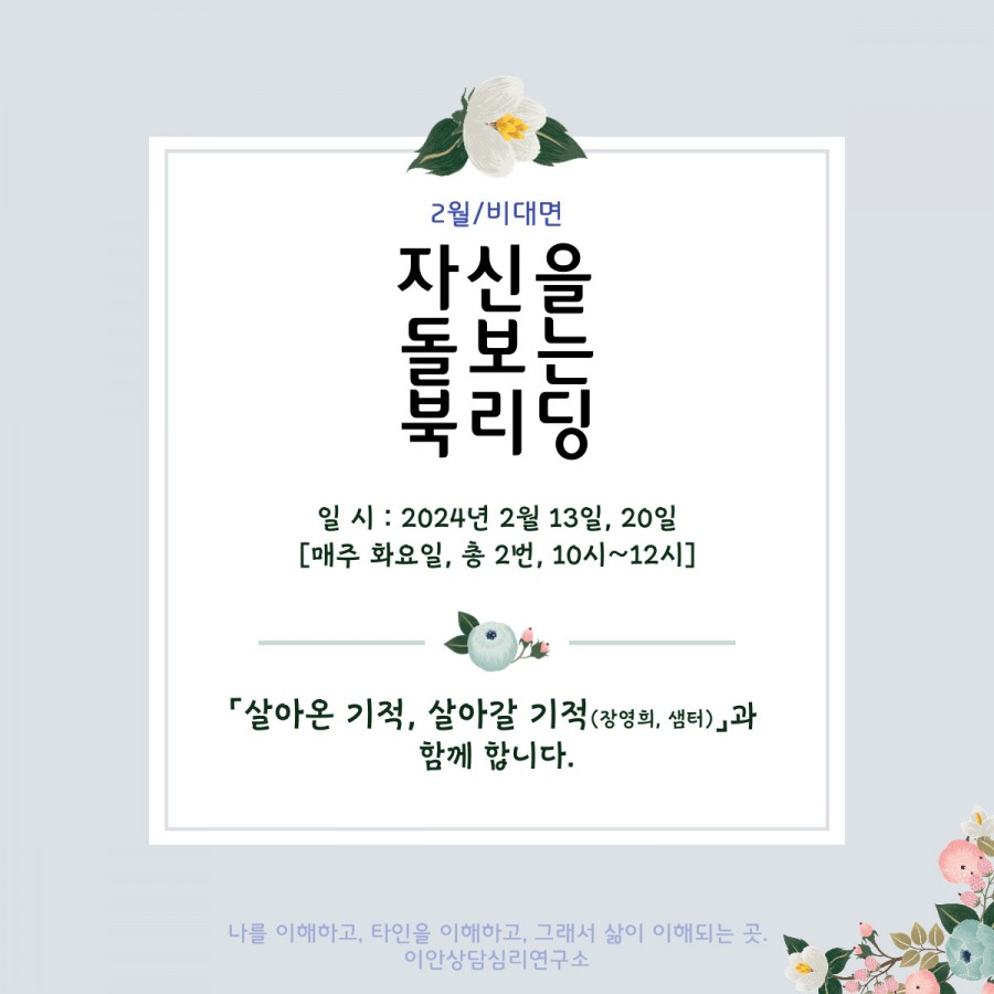 [이안상담심리연구소 [2월/비대면] 자신을 돌보는 북리딩 - 살아온 기적 살아갈 기적( ~ 02/06)