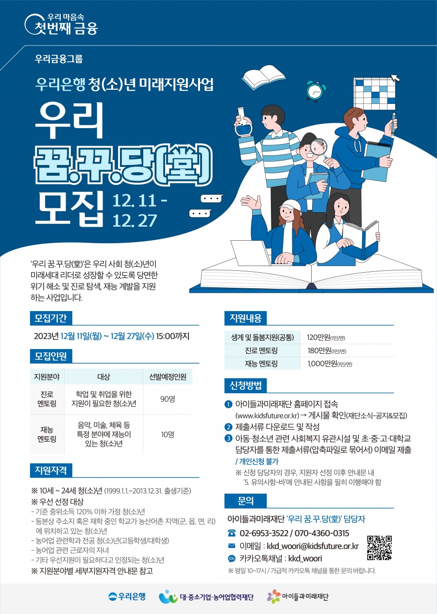 우리은행 청(소)년 미래지원사업 우리 꿈.꾸.당 모집 안내