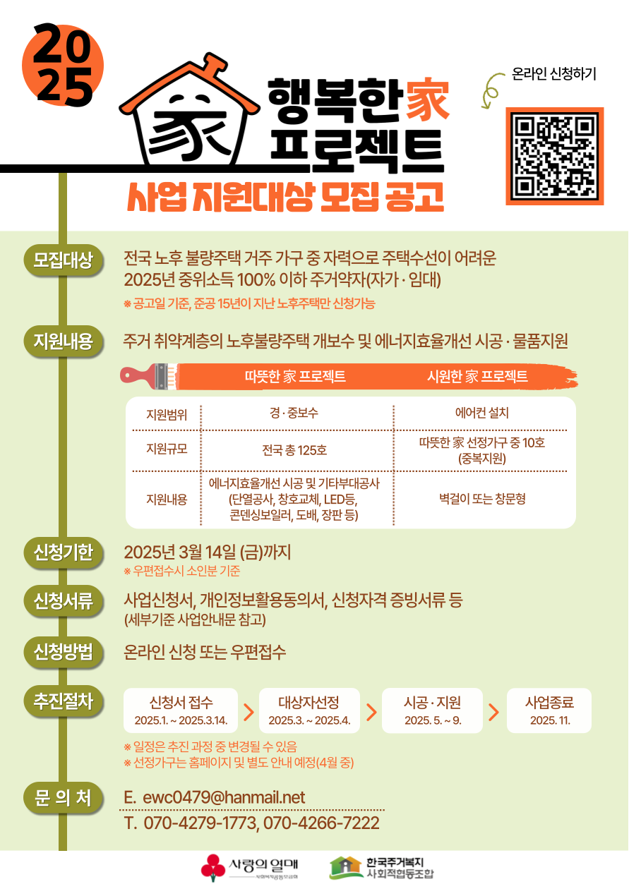 [한국주거복지 사회적협동조합] 2025년 행복한 家 프로젝트 사업 모집공고 (~3/14)