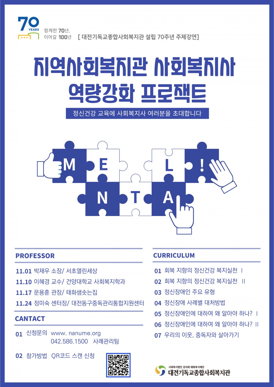 [대전기독교종합사회복지관] 역량강화 프로잭트(정신건강에 어려움을 겪고 있는 이용자가 있다면...) ( ~ 11/24)