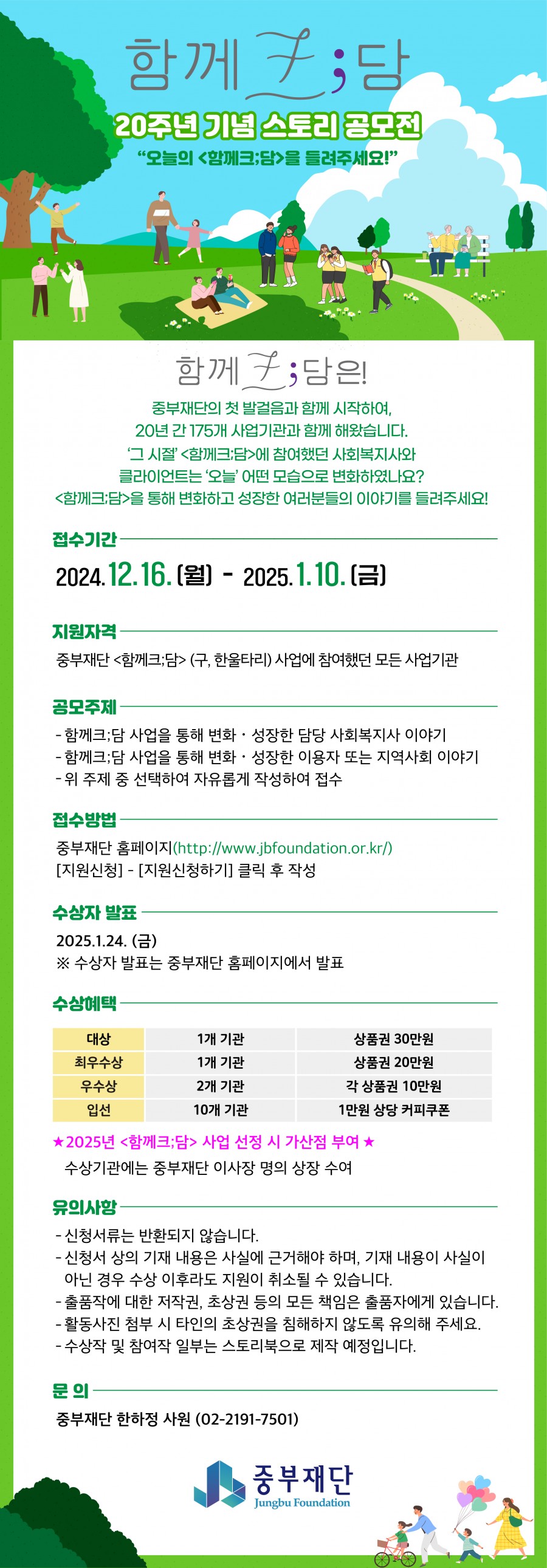 [중부재단] 함께크;담 (구, 한울타리) 20주년 기념 스토리 공모전 ( ~ 25/01/10)