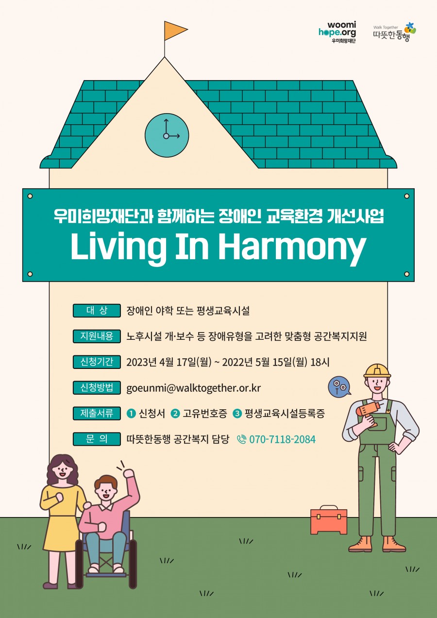 [우미희망재단] 교육환경 개선사업 'Living In Harmony ' 신청 안내(~5/15)