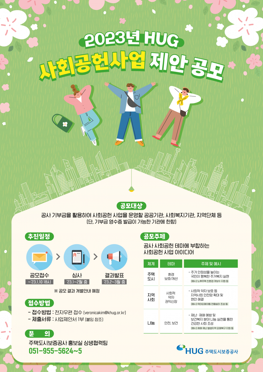 [주택도시보증공사] 2023년 HUG 사회공헌사업 제안 공모 안내(~1.10)