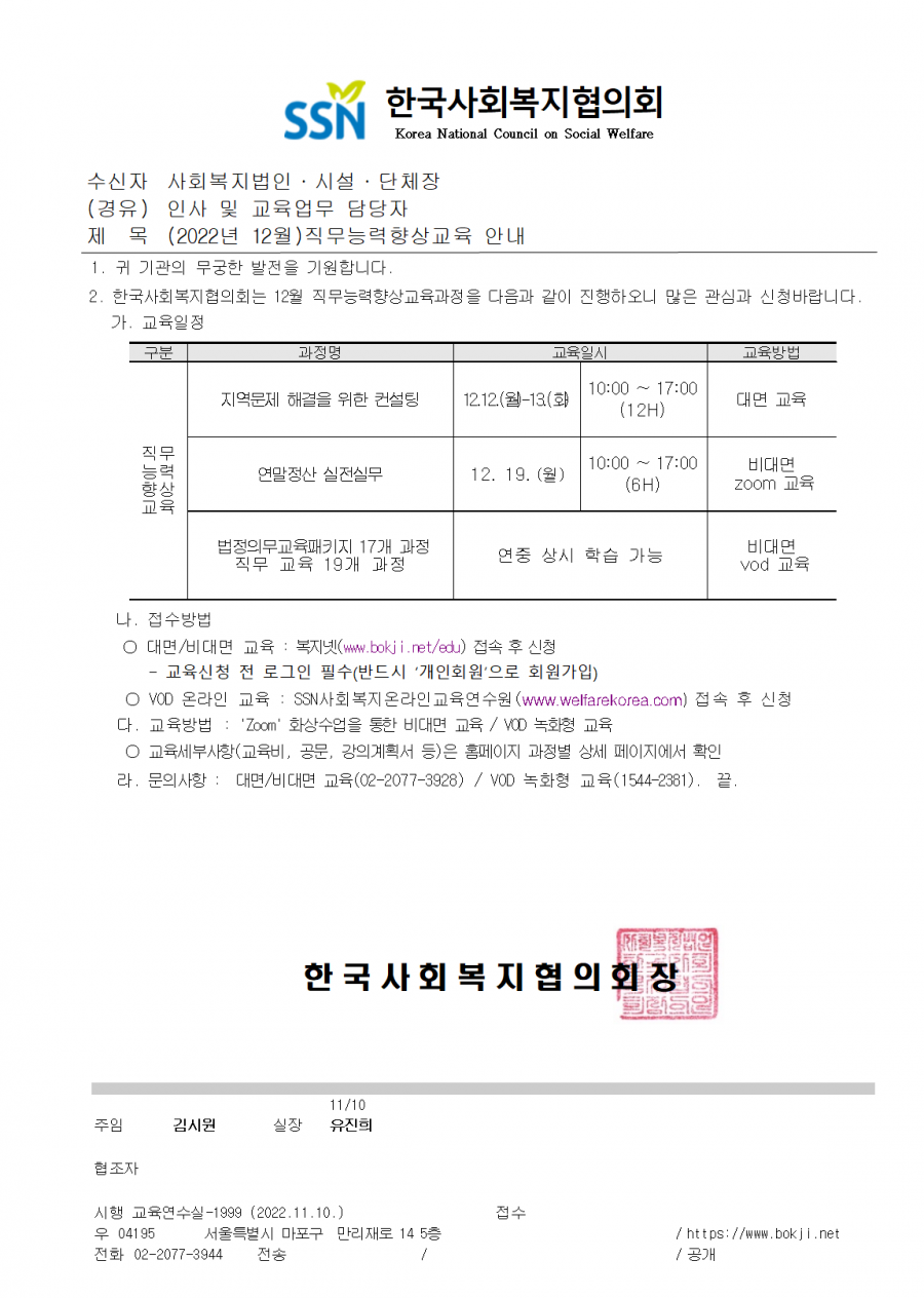 [한국사회복지협의회]지역문제해결을 위한 컨설팅 과정 교육 안내