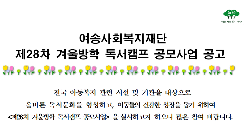 [여송복지재단] 제28차 겨울방학 독서캠프 공모사업 신청 안내(~10/28)