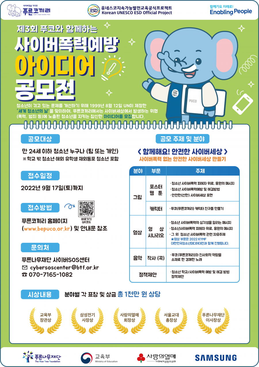 [푸른코끼리] 제 3회 푸코와 함께 하는 청소년 아이디어 공모전(~9/17)