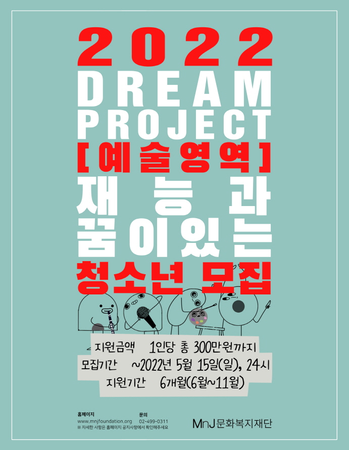 22년 예술 영역에 꿈과 재능이 있는 드림프로젝트 8기 청소년을 모집합니다.