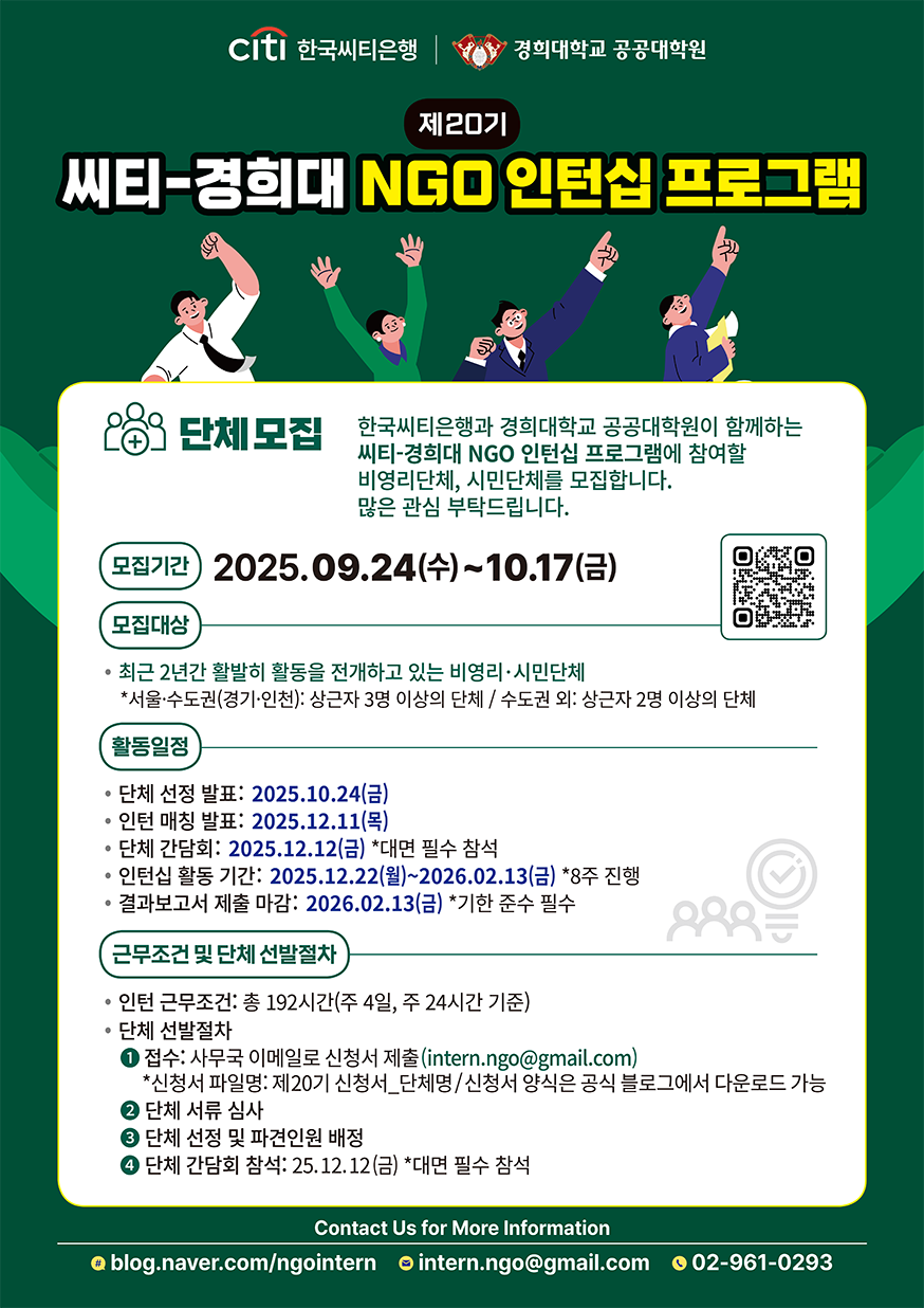 제20기 씨티–경희대 NGO 인턴십 프로그램이 9월 24일부터 참여 단체 접수를 시작합니다!