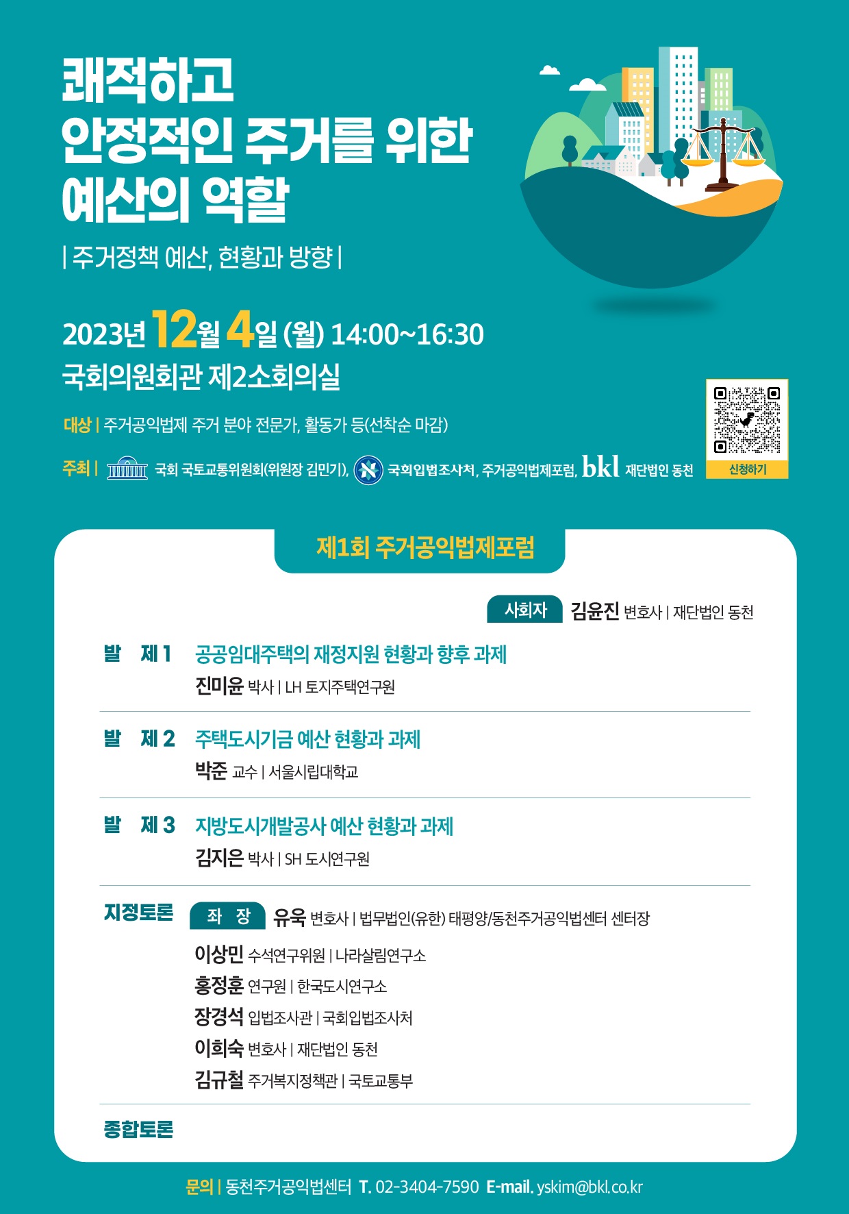 [재단법인 동천] 제1회 주거공익법제포럼 <쾌적하고 안정적인 주거를 위한 예산의 역할> (~상시)