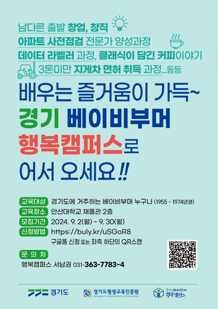 [경기도평생교육진흥원] 경기 베이비부머 행복캠퍼스 서남권역(안산) 2기 정규과정 교육생 모집 ( ~ 10/08)
