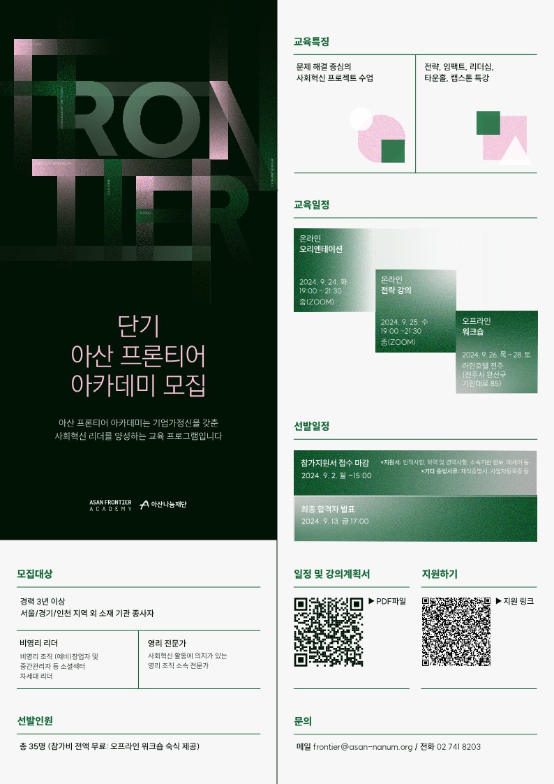 - 문의 : frontier@asan-nanum.org