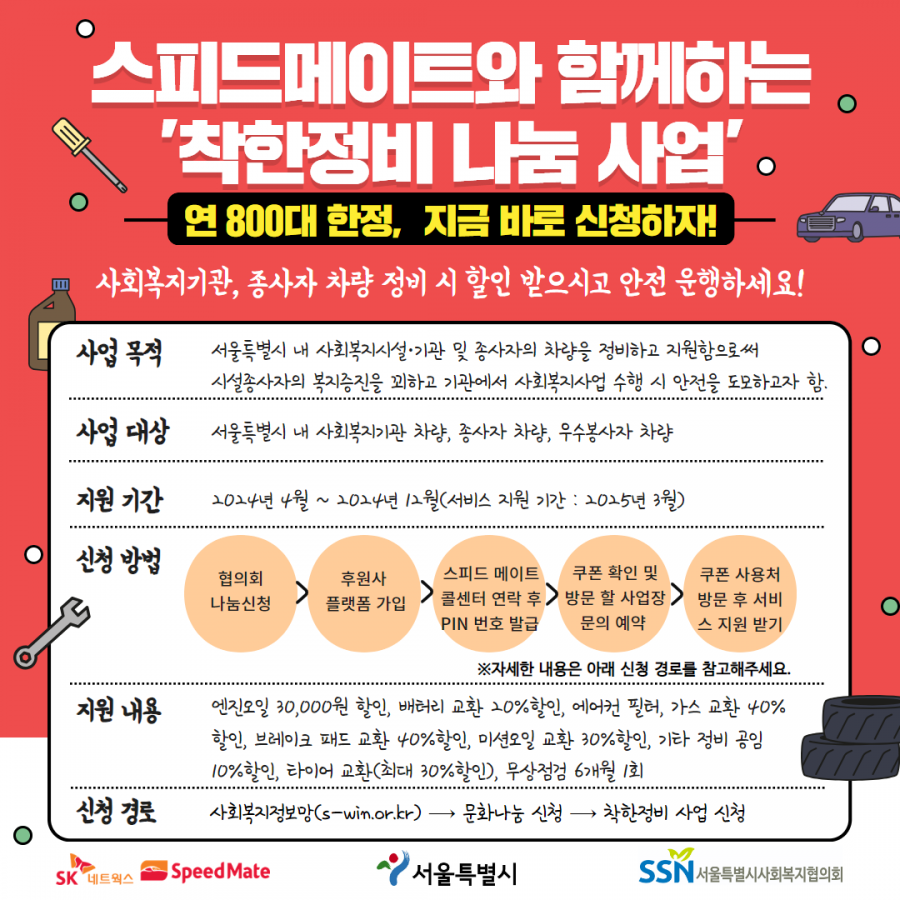 [서울사회복지협의회] 2024년 스피드메이트와 함께하는 착한정비 나눔 사업 안내 ( ~ 12/31)