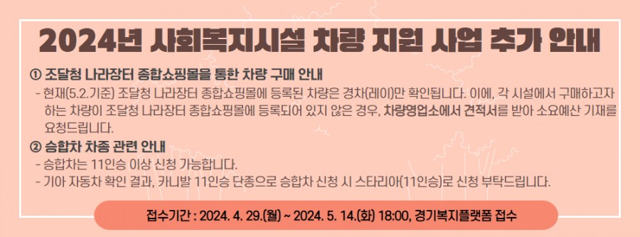[경기복지제단] 2024년 경기도 사회복지시설 차량 지원 사업 공고 ( ~ 05/14)