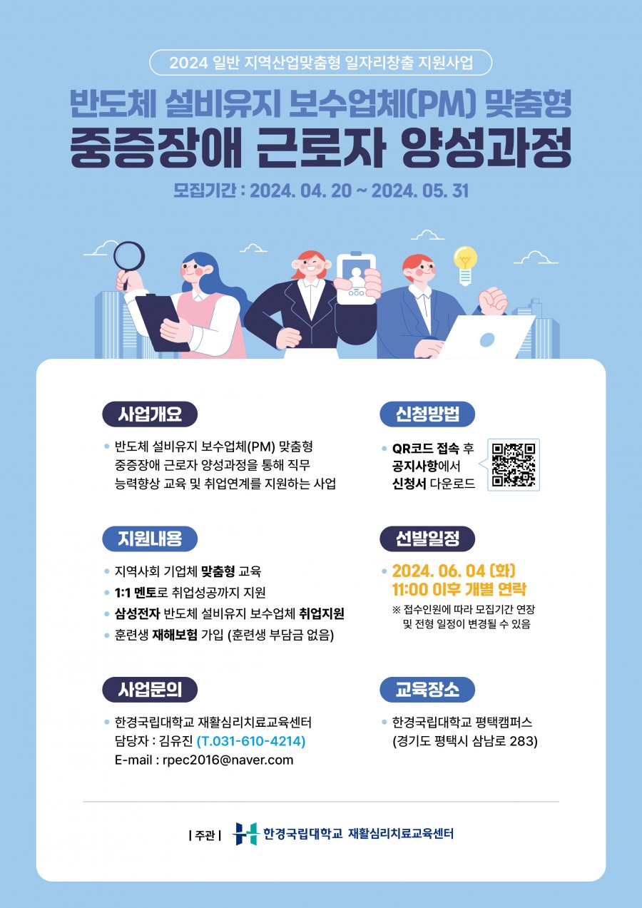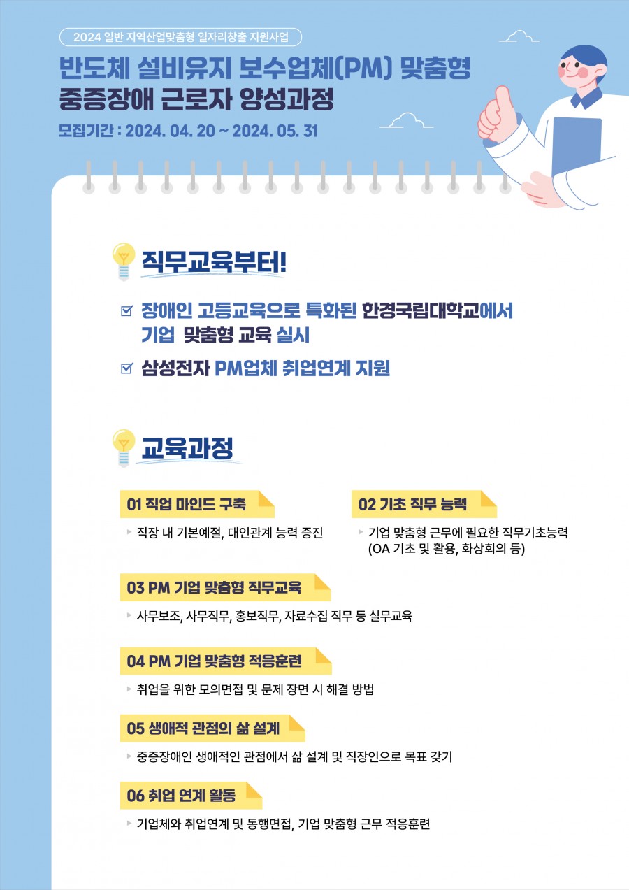 [한경국립대학교 재활심리교육센터] 반도체 설비유지 보수업체(PM) 맞춤형 중증장애 근로자 양성과정 ( ~ 05/31)