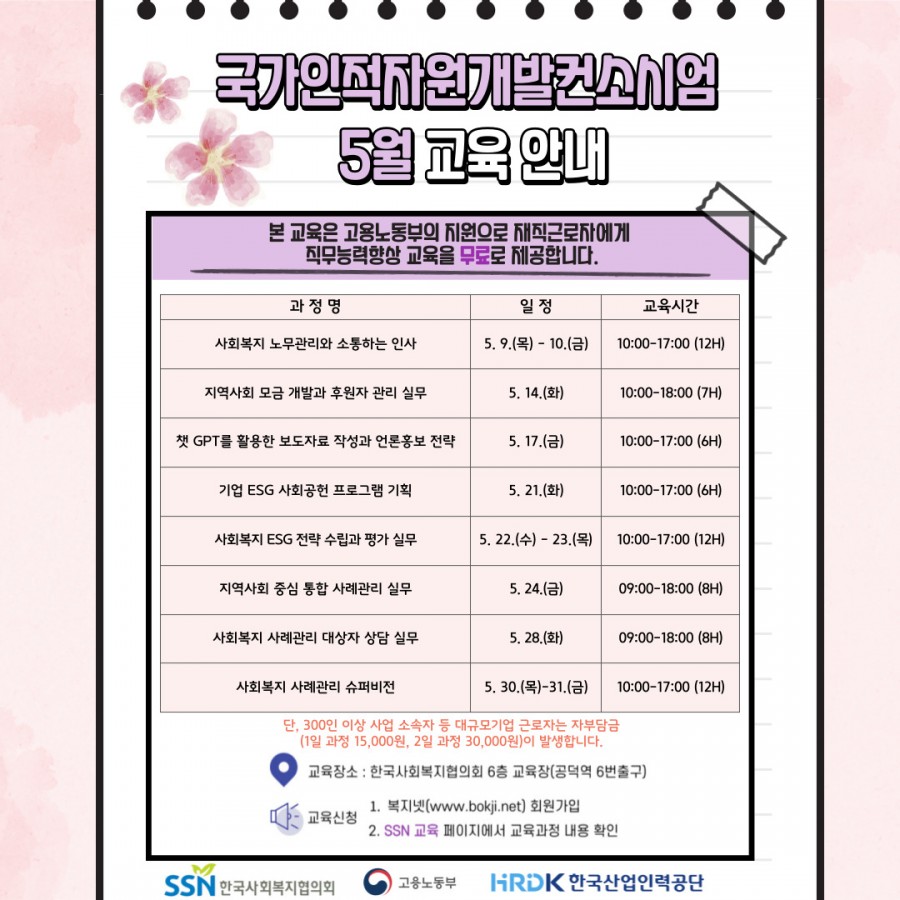 [한국사회복지협의회] 2024년 5월 국가인적자원개발컨소시엄 교육 안내 ( ~ 05/31)