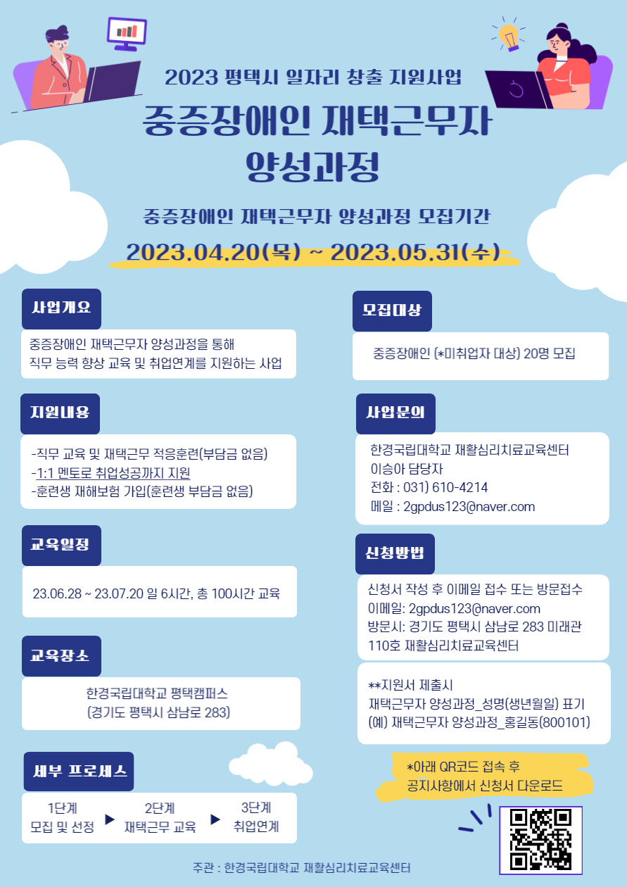 [2023 일반지역산업맞춤형 일자리 창출 지원사업] 중증장애인 재택근무자 양성과정 모집(~5/31)
