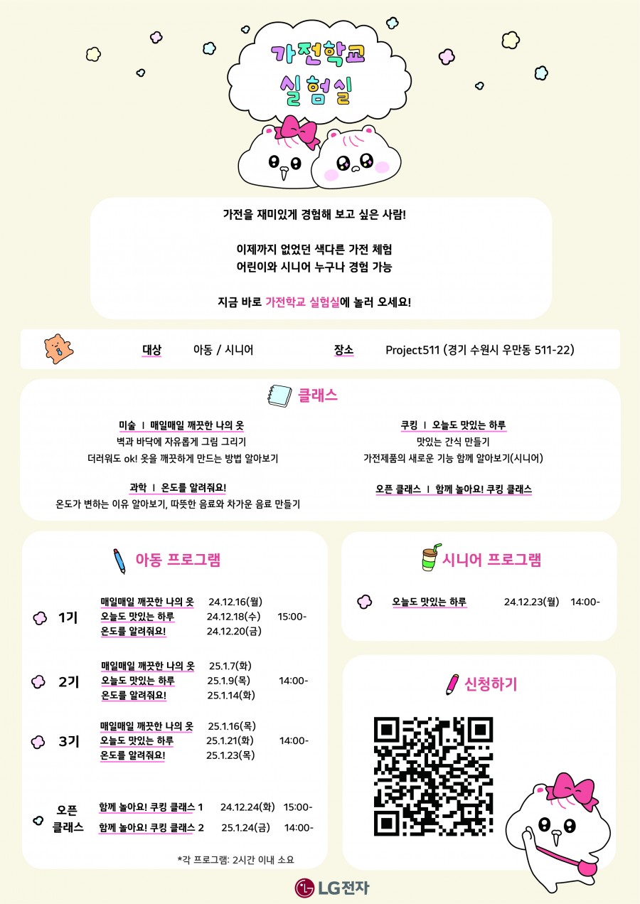 LG전자 가전학교 클래스 프로그램 참여자를 모집합니다.(개인 신청)