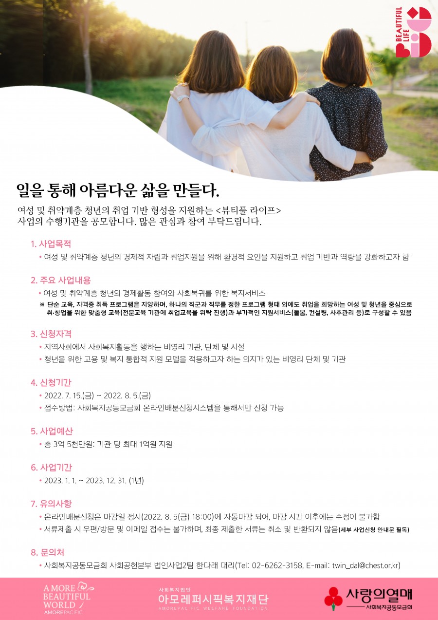 [사회복지공동모금회] 2023년 아모레퍼시픽 "뷰티풀 라이프" 공모사업 신청 안내(~8/5)
